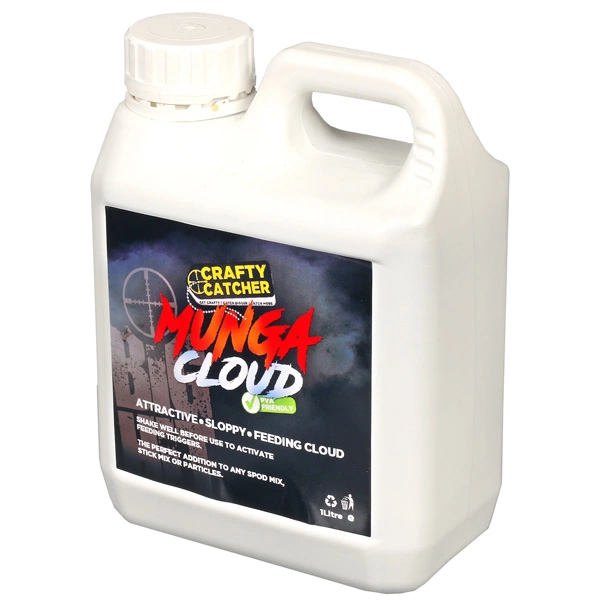 Big Hit Munga Cloud is a combination of water soluble liquid foods and feed including oils, that work together to create a rich enticing cloud of attraction around your hookbait. As well as spreading to the upper layers to pull fish down through the water column to your baited area. 1ltr bottle.