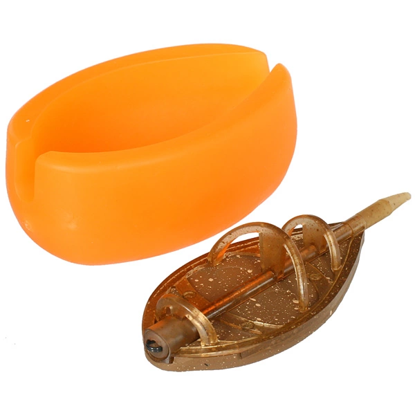 The semi flexible bait mould has a small indentation at its centre point. By positioning the hook bait in this depression it will be perfectly located between the two largest curved ribs of the feeder and will sit partially showing right on top of the moulded bait. This puts it right in pole position for a positive pick up and hook hold as soon as a Carp sucks in the bait.