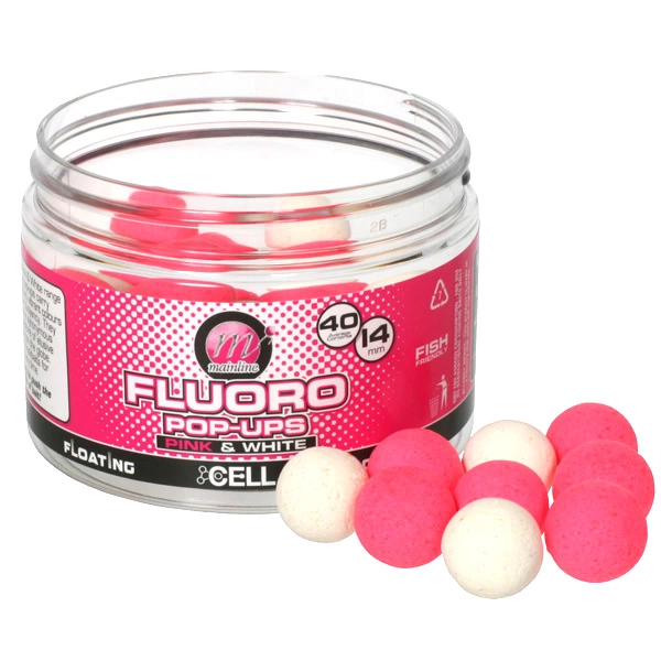 Mainline Fluoro Pop-Ups are quite simply a must-have item for the dedicated carper. Combining two highly visual colours of pink and white with your favourite dedicated freezer bait flavours to create a high-attract hookbait selection with a food source signal.