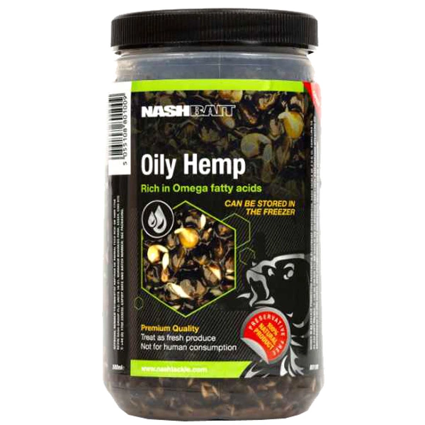 Using highest grade large French hempseed, oil boosted for an improved Omega 3 and 6 essential fatty acid profile Oily Hemp is the perfect carpet feed or spod mix ingredient, slicking oil droplets to attract carp from all levels of the water column and creating flat spots to give you vital signs of feeding carp over your areas.