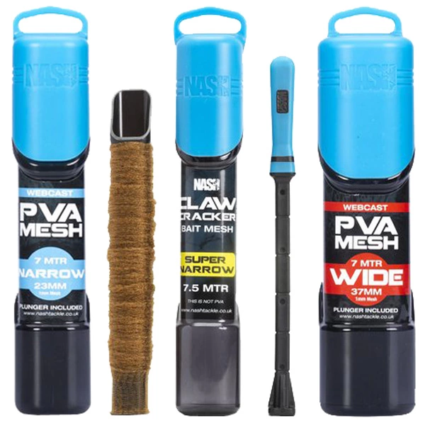 Three diameters of loading tubes satisfy any feeding requirement from tiny sticks when scratching for bites to large mesh bags when carp are feeding hard. Super Narrow β 18mm, Narrow β 23mm and Wide β 37mm. For the Nash Webcast PVA Refill β 5m see product code 24015.