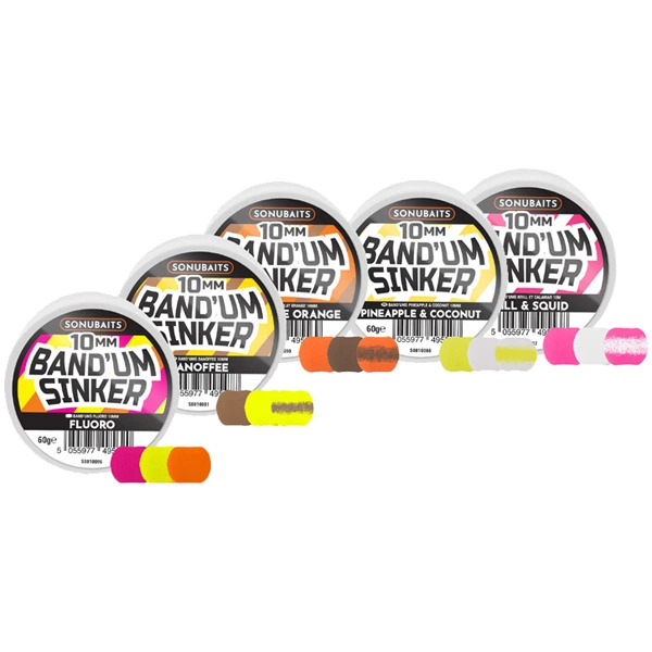 Band’Um Sinkers, as the name suggests is a range of highly effective sinking hookbaits develop to complement the Band’Um Wafters and are perfectly suited to be used when deploying method feeder, pellet feeder, bomb or waggler tactics.