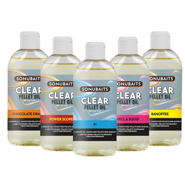 Unlike other oils, Clear Pellet Oil has the unique characteristic of being a heavy, sinking oil that can be used to enhance the performance of otherwise unpredictable fishery pellets. It is also an incredibly stable oil allowing it to be used in extremely warm or even sub-zero temperatures without change to its characteristics. An even coating of Clear Pellet Oil will ensure every pellet sinks straight to the bottom at an even rate. Supplied in a convenient bottle with click cap squirty lid. 200ml bottle.
