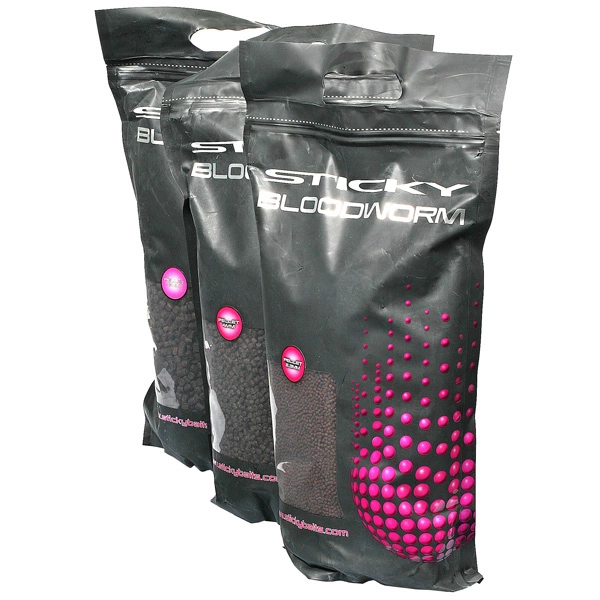 Sticky give a complete food source, low oil pellet a unique two stage secret coating. The outer coating breaks away from the pellet and sends food particles and signals up through the water column to pull any fish towards the baited area. The second coating leaks out a dense dark red cloud of bloodworm goodness that clings to the lakebed of the baited area. They can also be βballed upβ with the addition of a liquid, which makes them ideal for moulding round a method feeder.