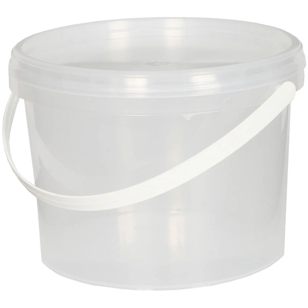 A clear plastic bucket supplied with handle and lid. Great for carrying or storing particles, boilies, maggots and livebaits.